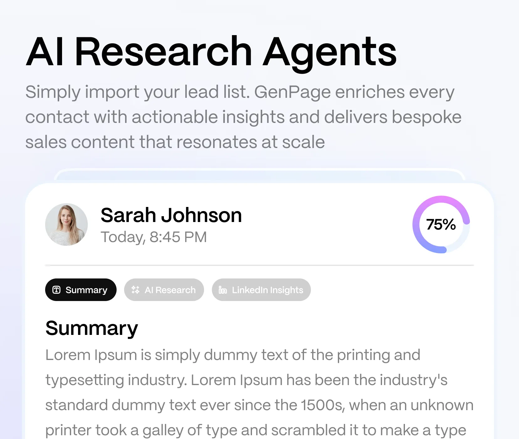 “ The magic of GenPage is simple. It turns cold outreach into one-on-one experiences - which has helped 3X our meeting bookings. “