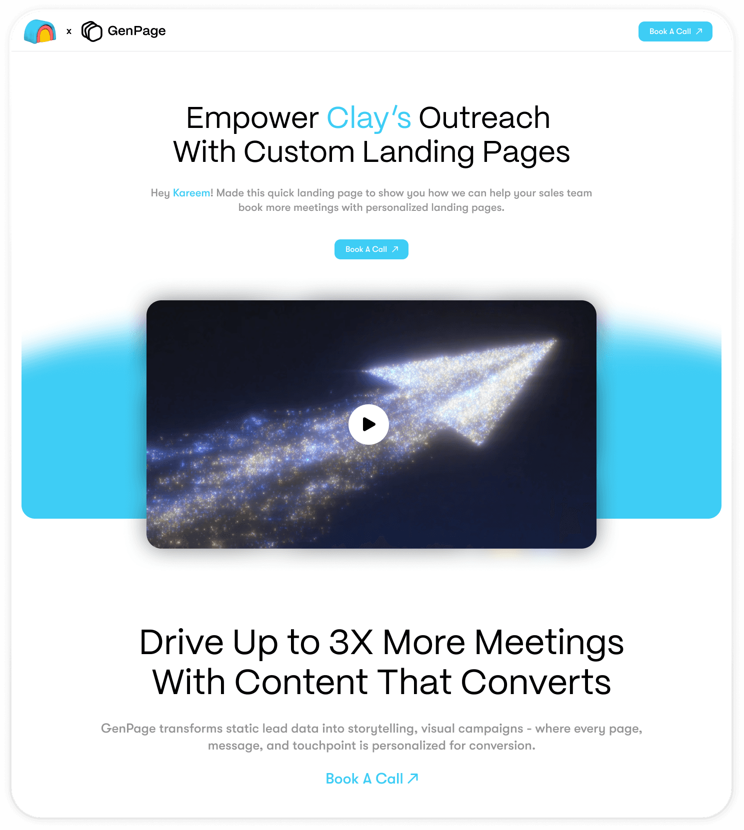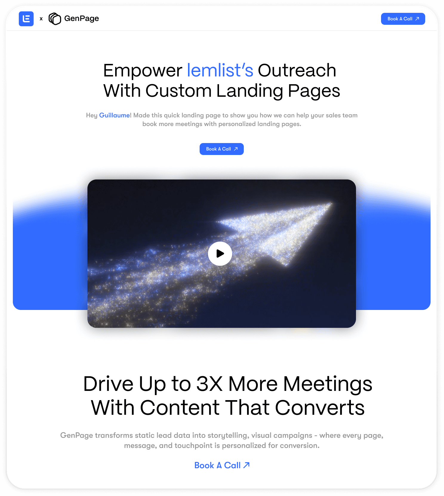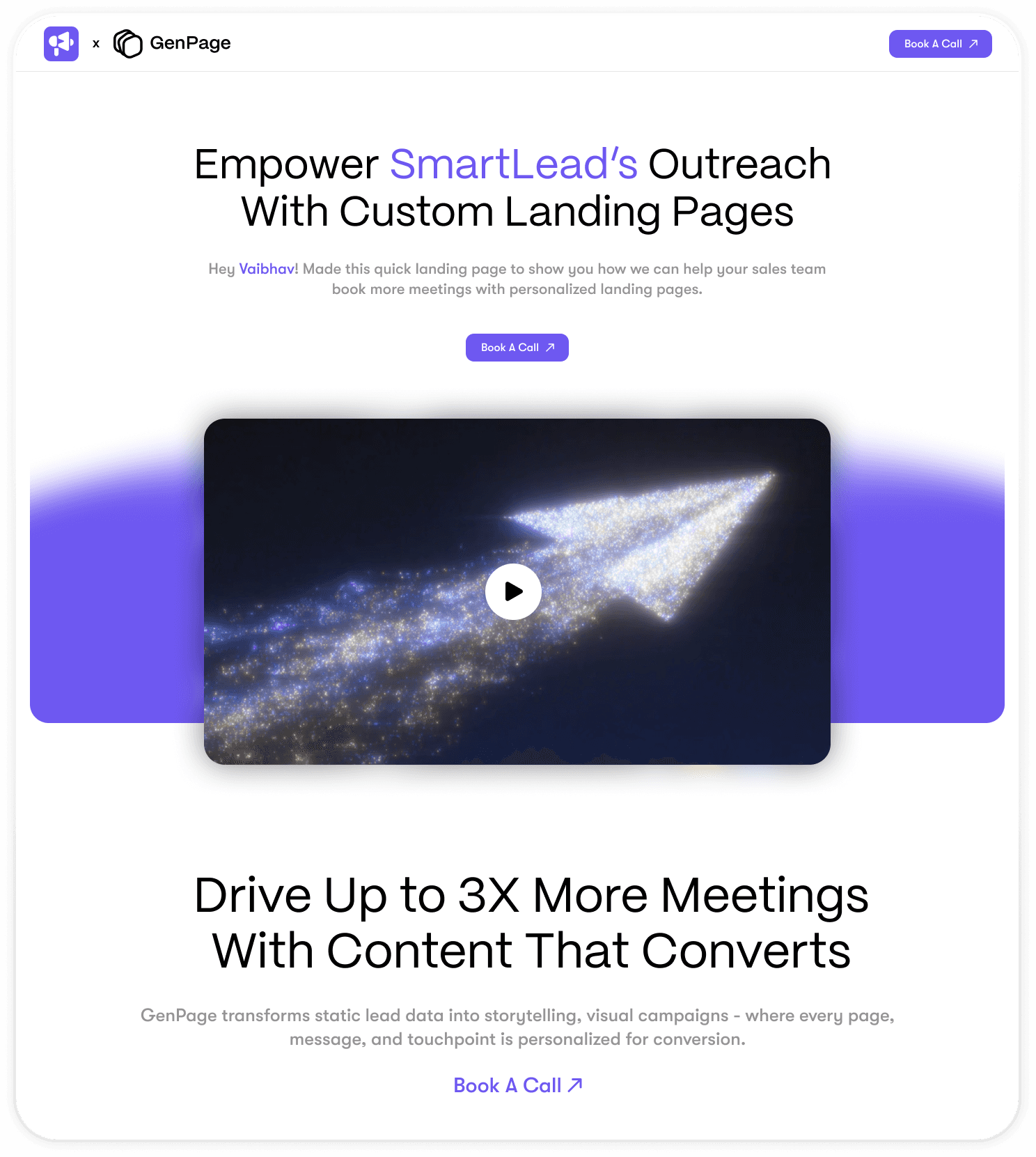 “The magic of GenPage is simple. It turns cold outreach into one-on-one experiences - which has helped 3x our meeting bookings.“
