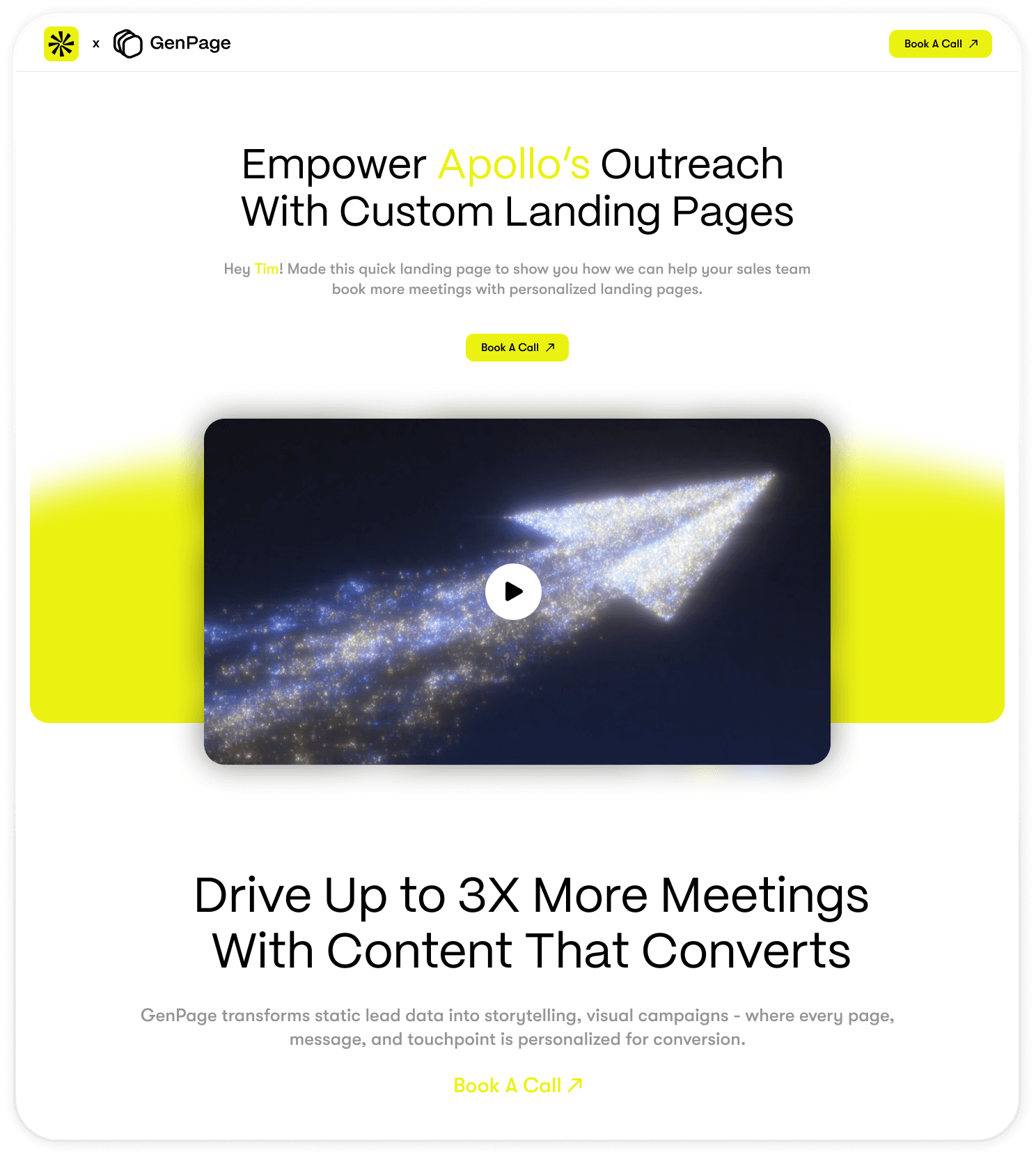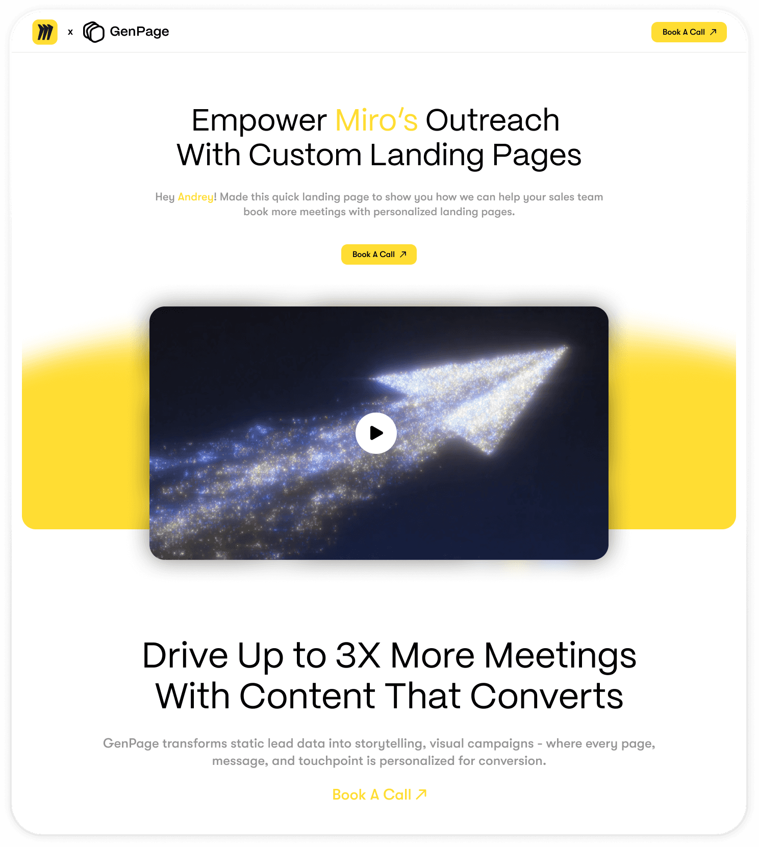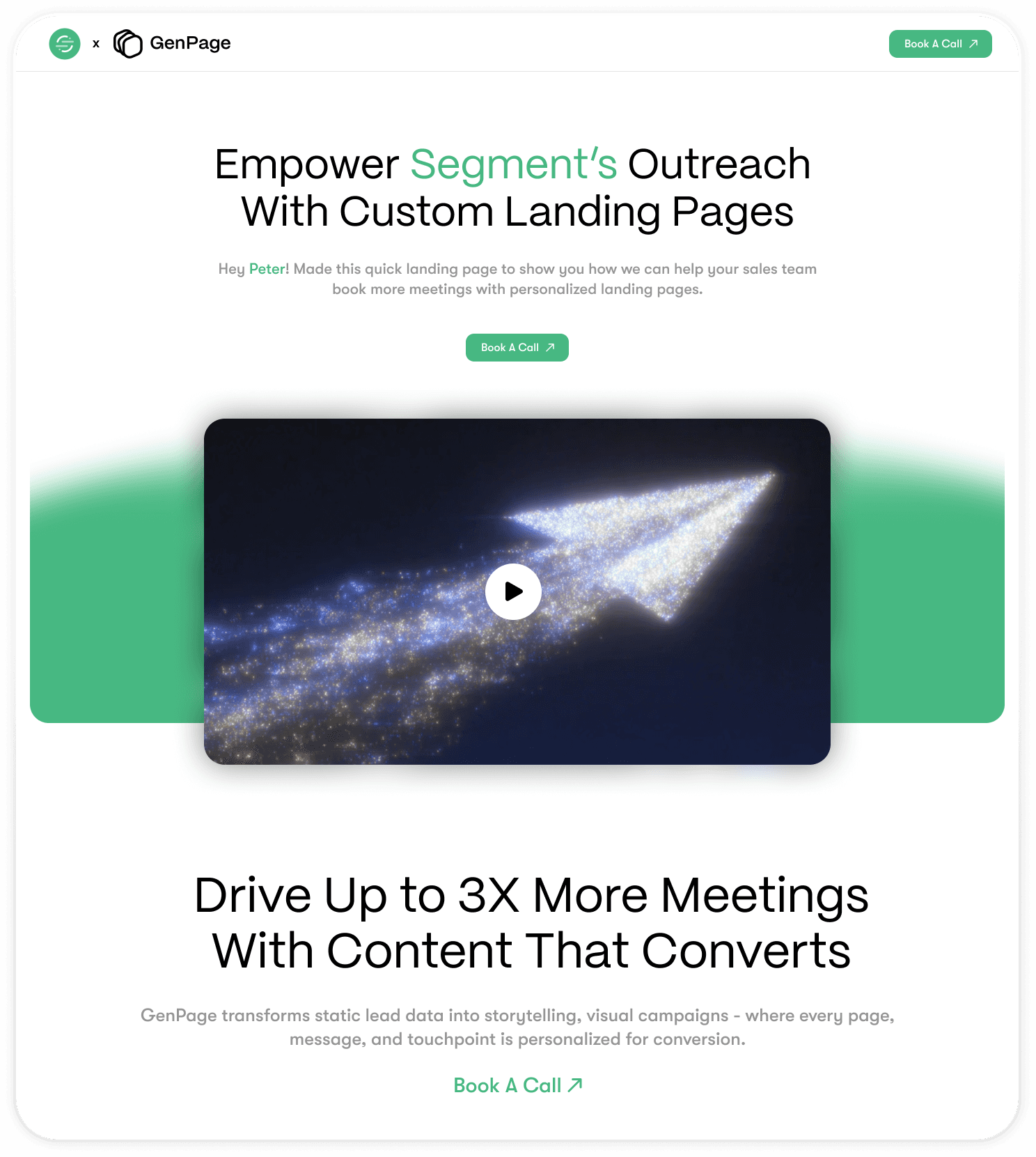 “The magic of GenPage is simple. It turns cold outreach into one-on-one experiences - which has helped 3x our meeting bookings.“