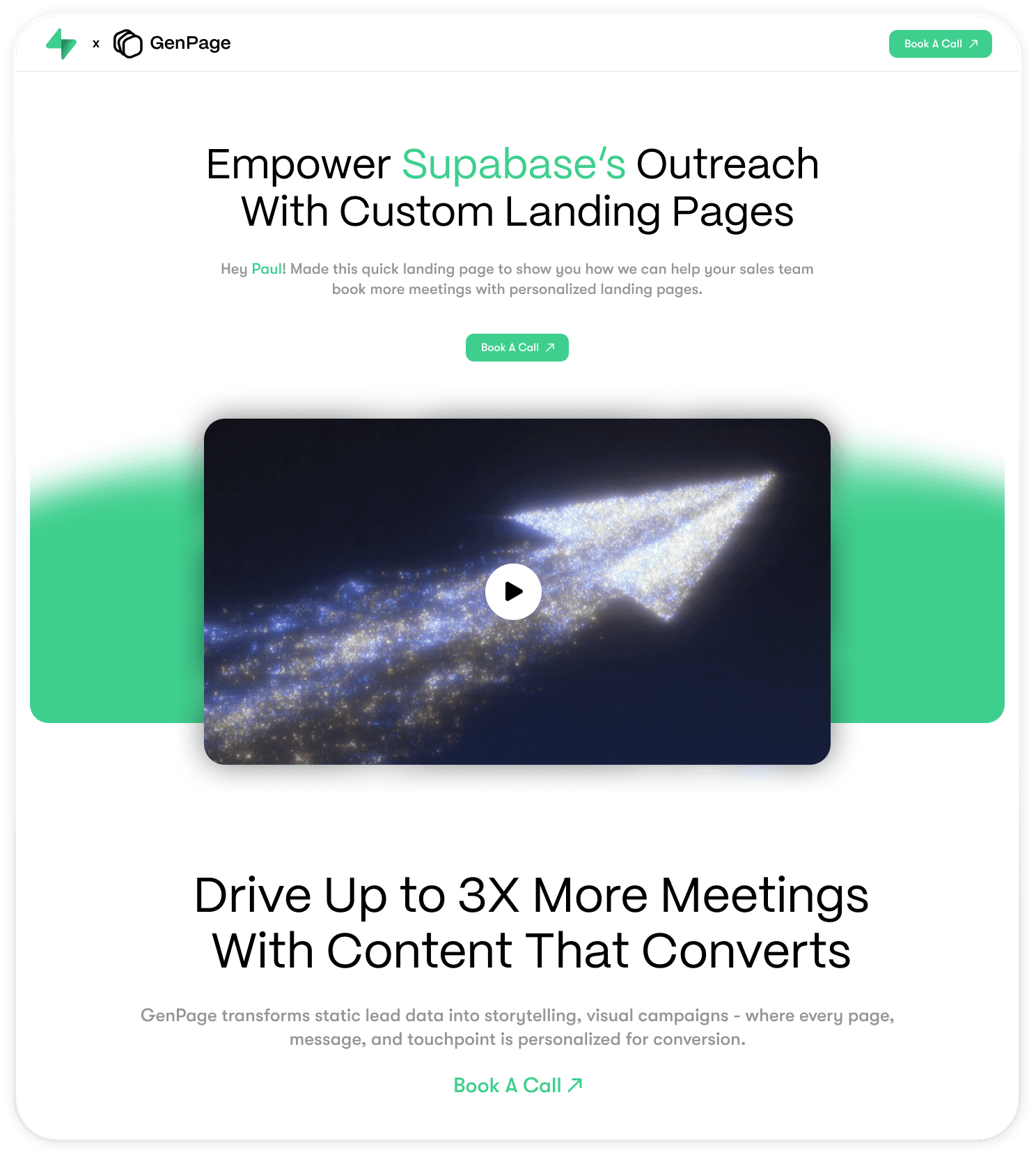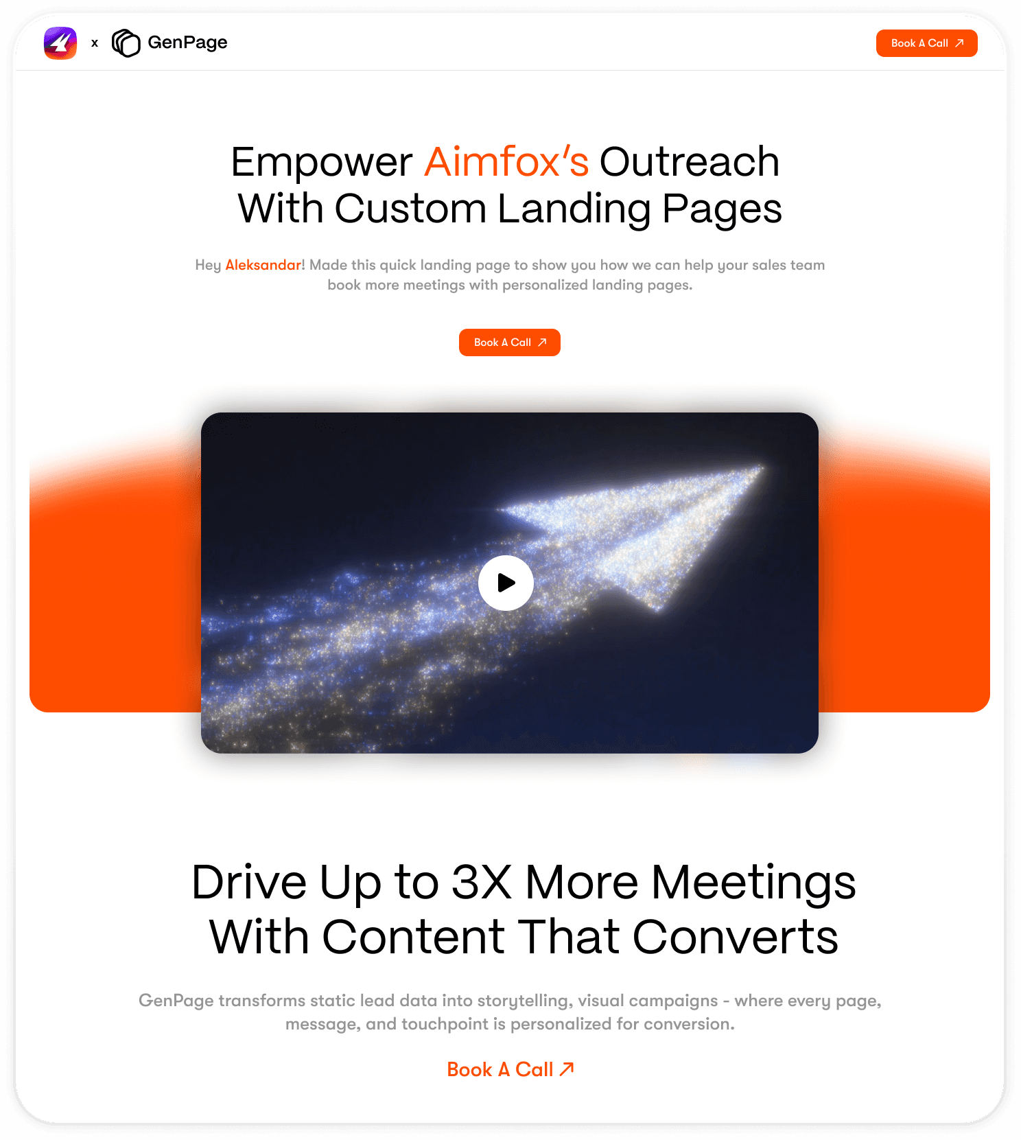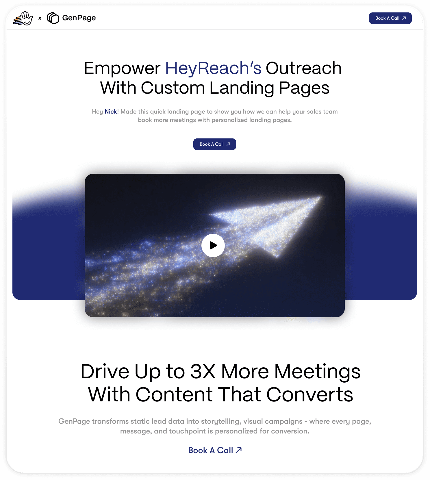 GenPage is an AI-powered ABM platform that creates a unique landing page for every target account and contact. By tailoring messaging, proof, and CTAs to each recipient, GenPage helps teams run higher-performing ABM campaigns and convert more outbound traffic into replies and booked meetings.