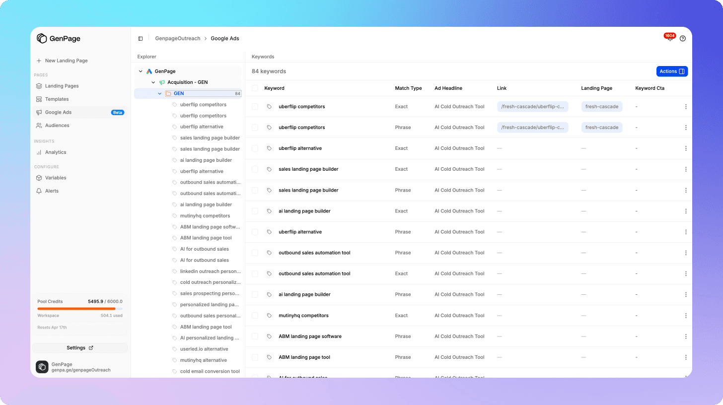 Passing UTM data or GenPage URL links into your CRM or marketing automation platform means your sales team knows which keyword cluster converted, your email onboarding can reference the use case the user clicked on, and your retargeting campaigns can show creatives consistent with the original ad that brought them in.