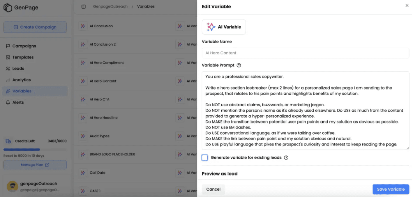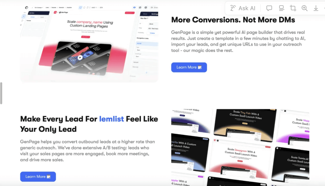 Personalized landing pages are the core multiplier in modern outbound. They break patterns, increase curiosity, and help prospects understand your value instantly. GenPage allows you to create these personalized sales pages at scale using AI-driven content generation, variable-based personalization, and built-in data enrichment.