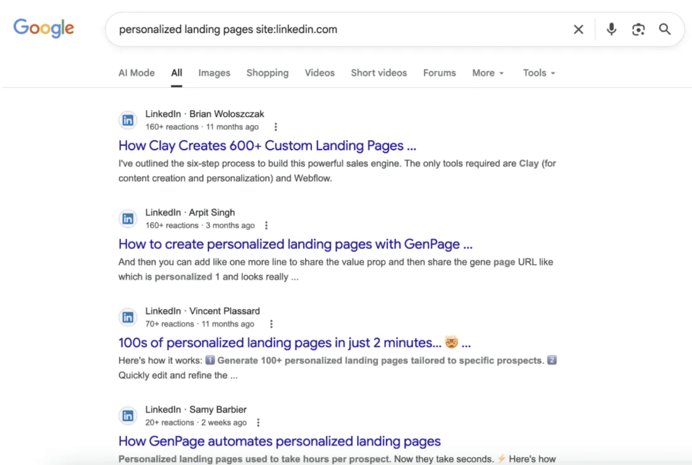 A simple but effective tactic is using Google search operators to uncover high-engagement LinkedIn posts that your ICP interacts with: