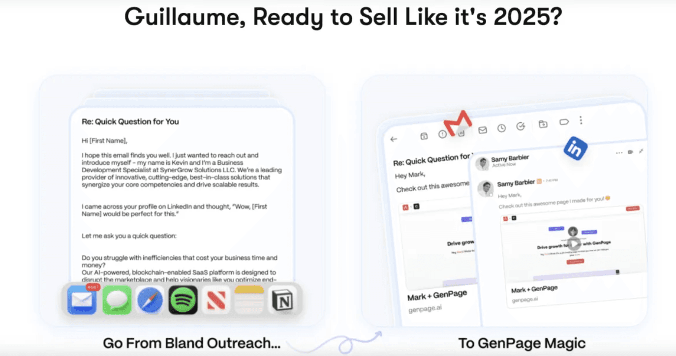 My name is Samy, and I’m the co-founder and CEO of GenPage. Before building GenPage, I was Head of Growth at a B2B SaaS company running high-volume outbound campaigns. We struggled with the same problems every team faces: low reply rates, inconsistent personalization, and tools that were too slow, too enterprise-focused, or too expensive.