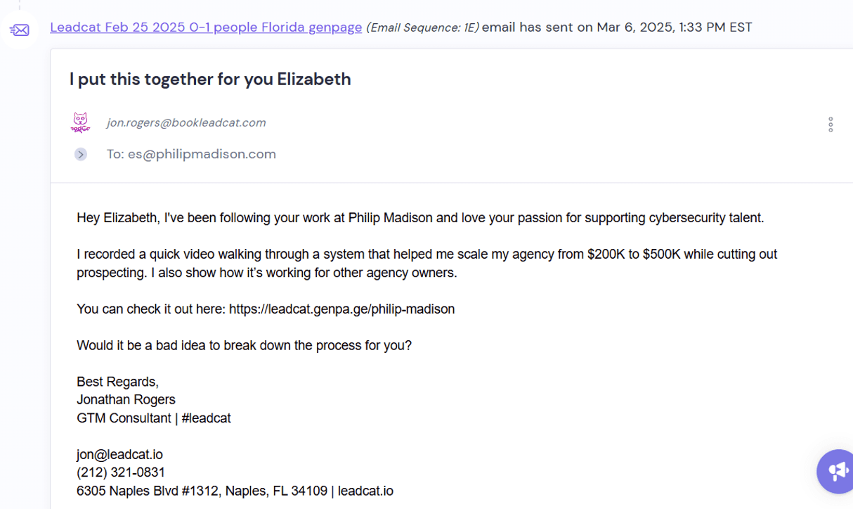 LeadCat didn’t win by sending more emails. They won by making each message feel like it was written for one person - and giving prospects a page that proved it.