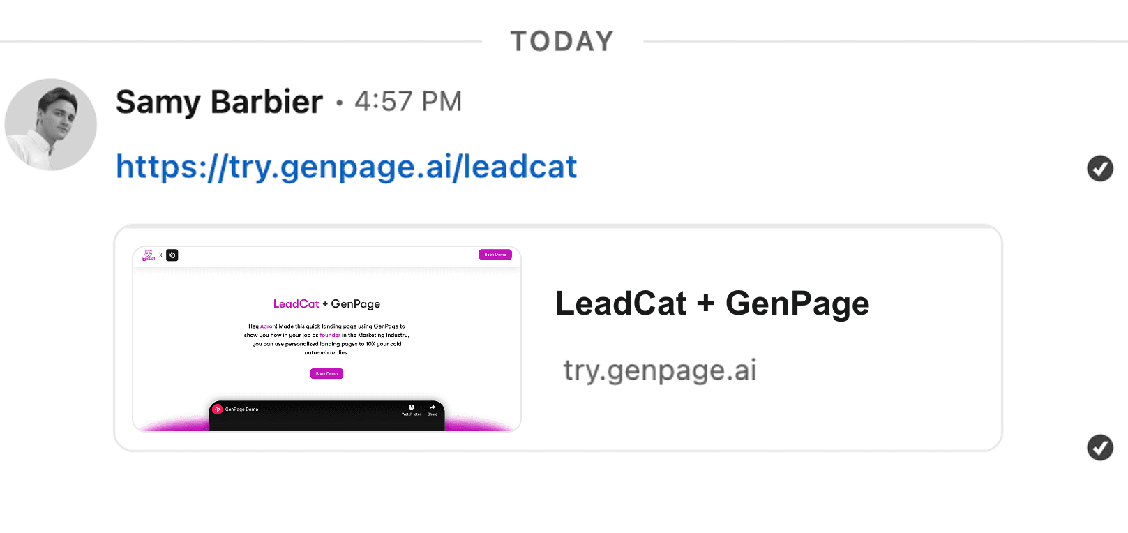 After the results, LeadCat doubled down. With guidance from the GenPage success team, they expanded beyond email into LinkedIn - leveraging GenPage’s inbox preview (meta title + OG image) to increase curiosity and click-through rates.