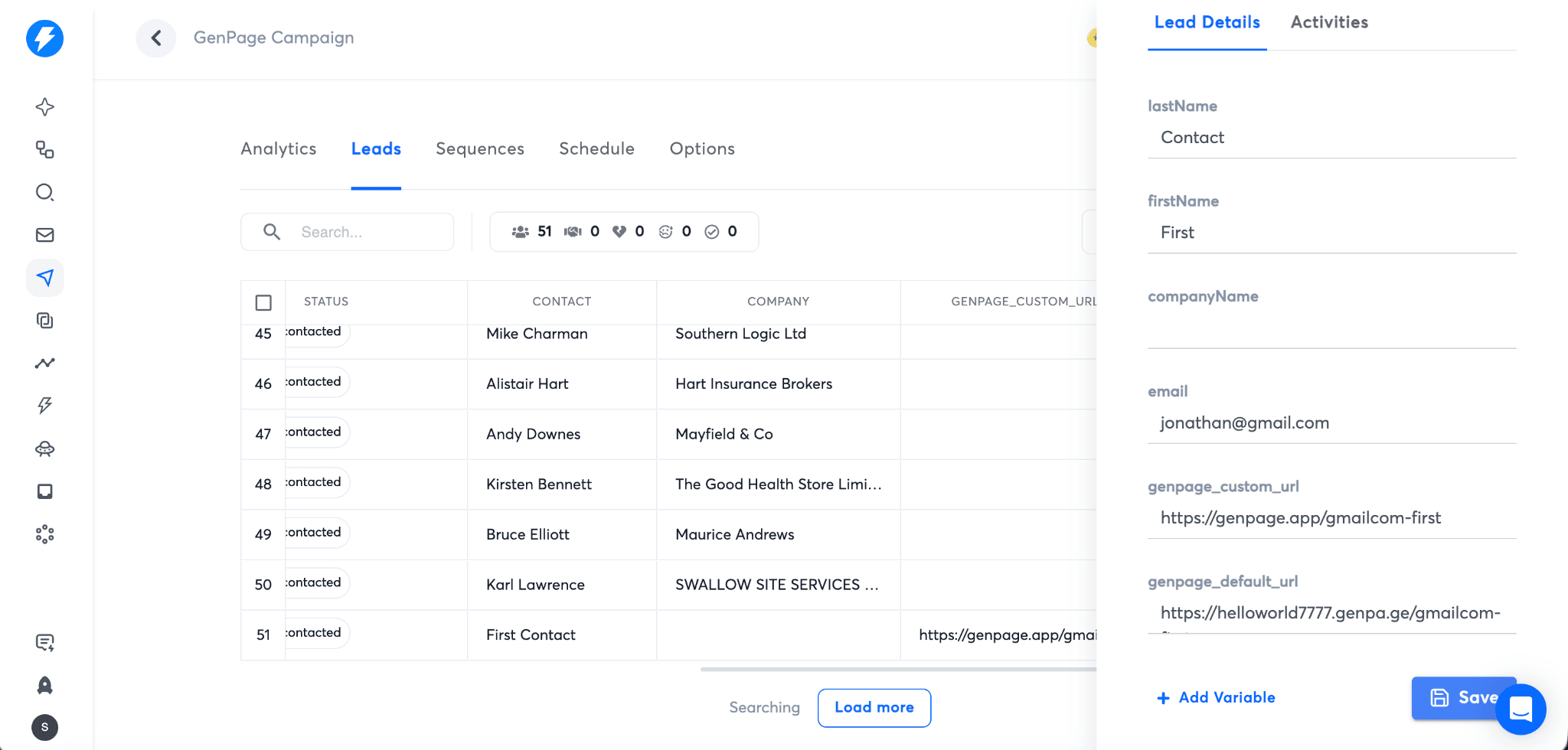 When exporting leads to Instantly, GenPage automatically creates custom variables for all lead properties stored in GenPage.