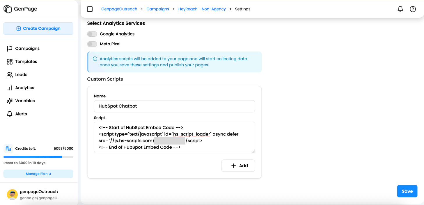 Your GenPage campaigns now support embedded chatbots and custom scripts, letting you engage leads in real time and track performance with your own tools.