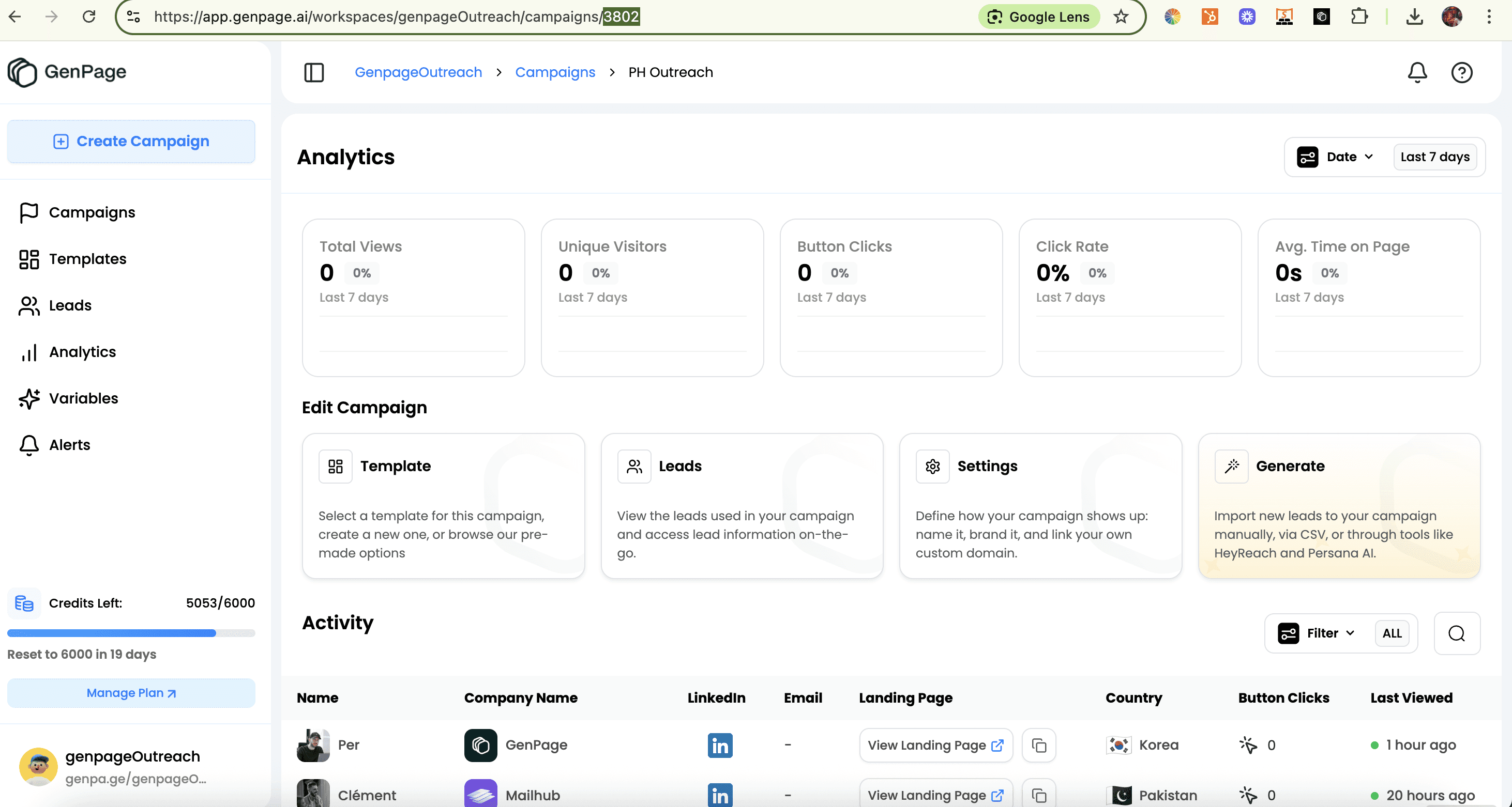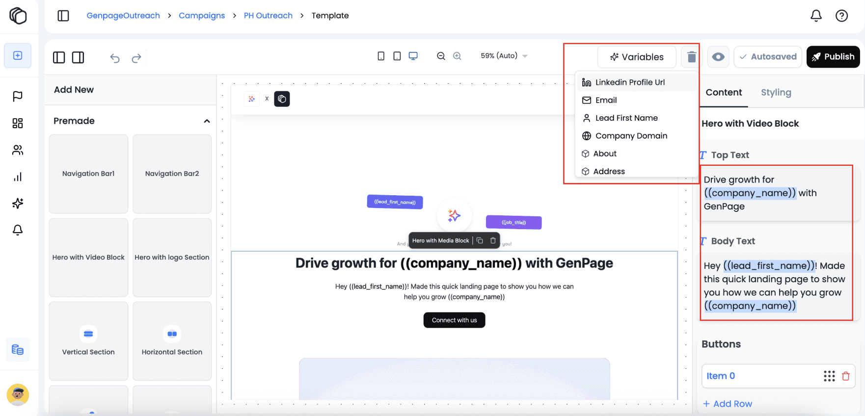 Important: The variables above (first_name, company_name, domain, email, and linkedin_profile_url) are default GenPage variables.