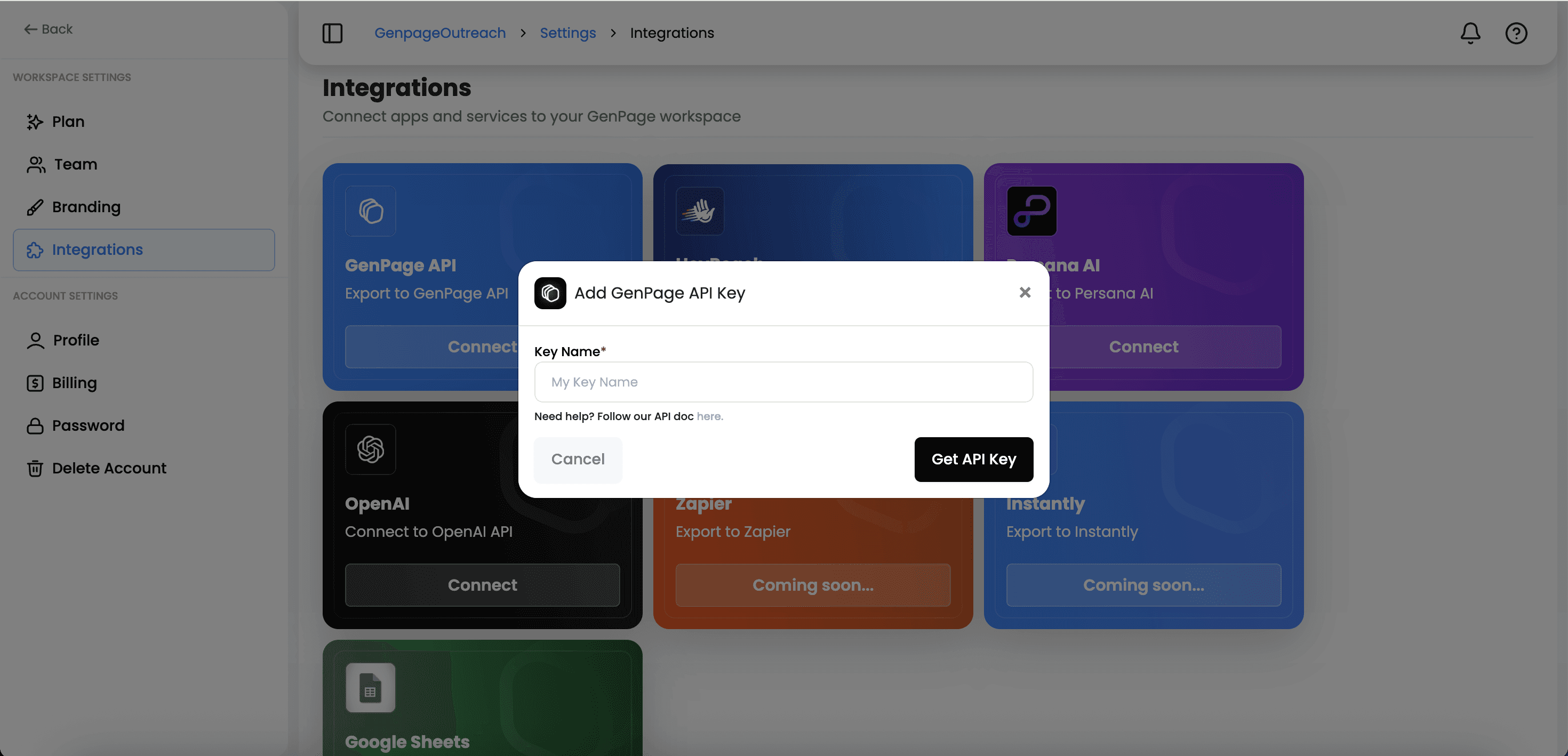 To begin, grab your API key from GenPage: